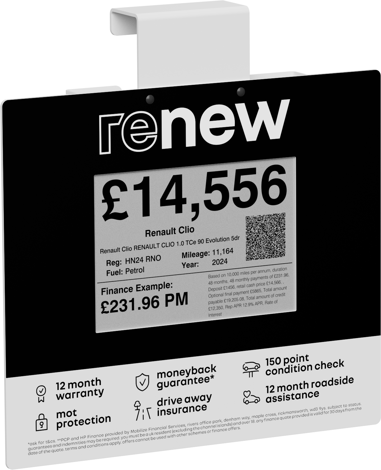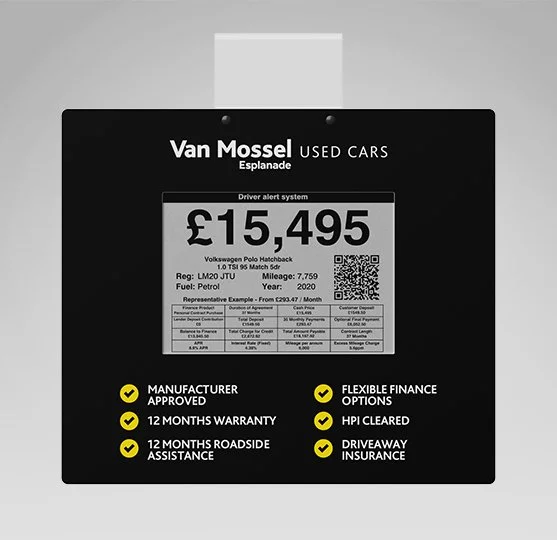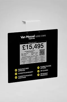 Powers digital pricing both in the showroom and outdoors on the forecourt