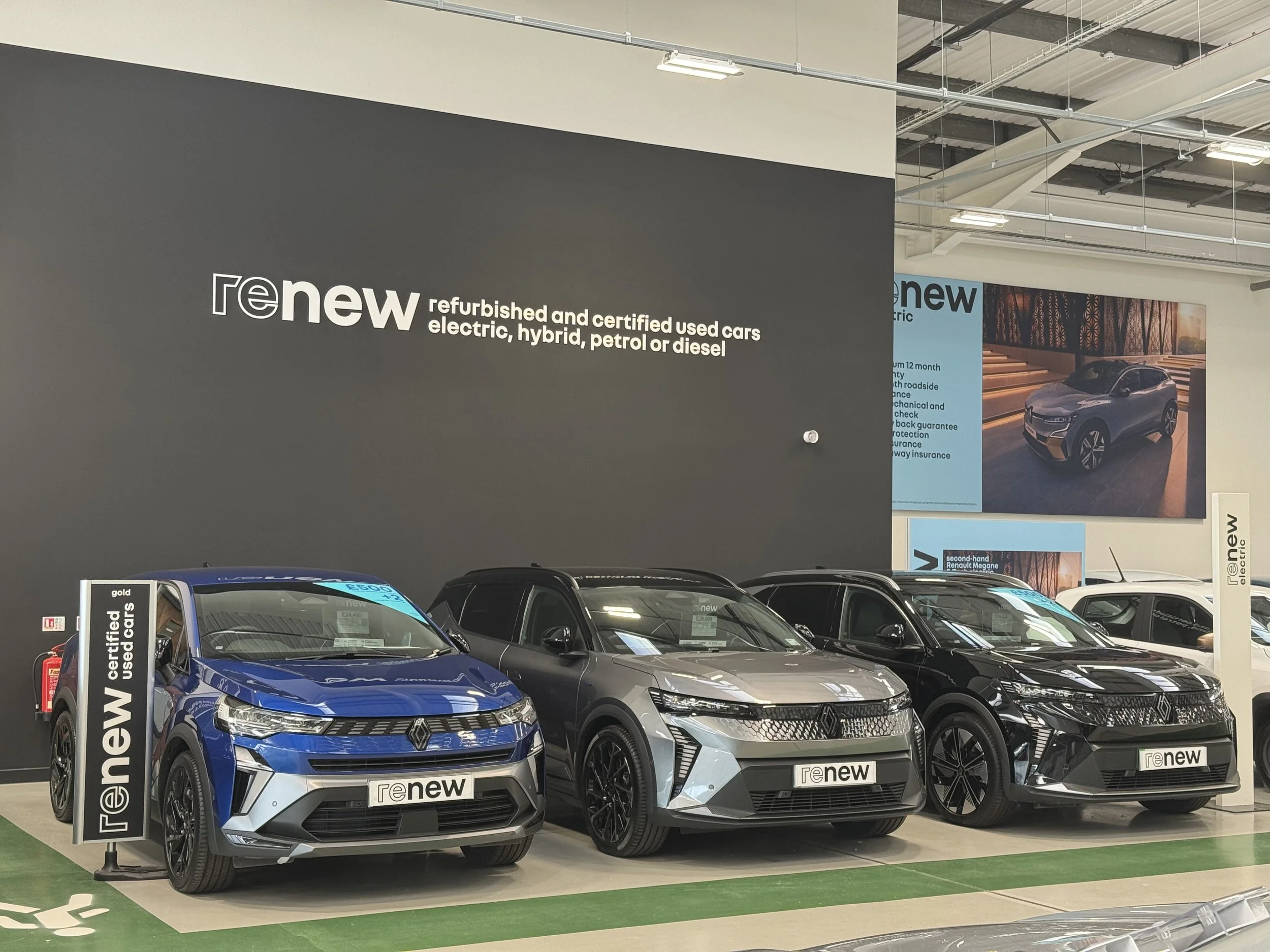 Screens deployed across all 12 Renault Retail Group locations, covering all vehicles for sale.